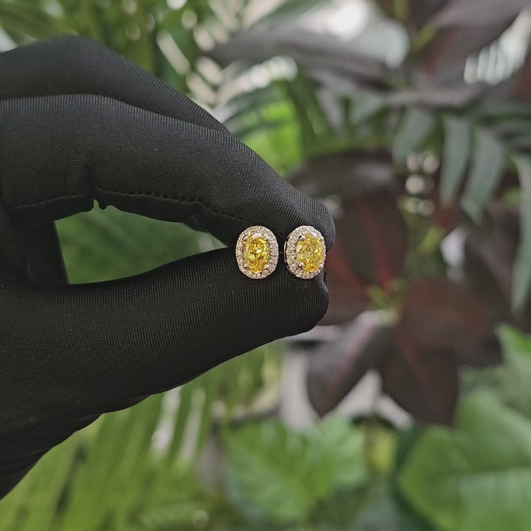 椭圆形光环培育钻石钻石耳环